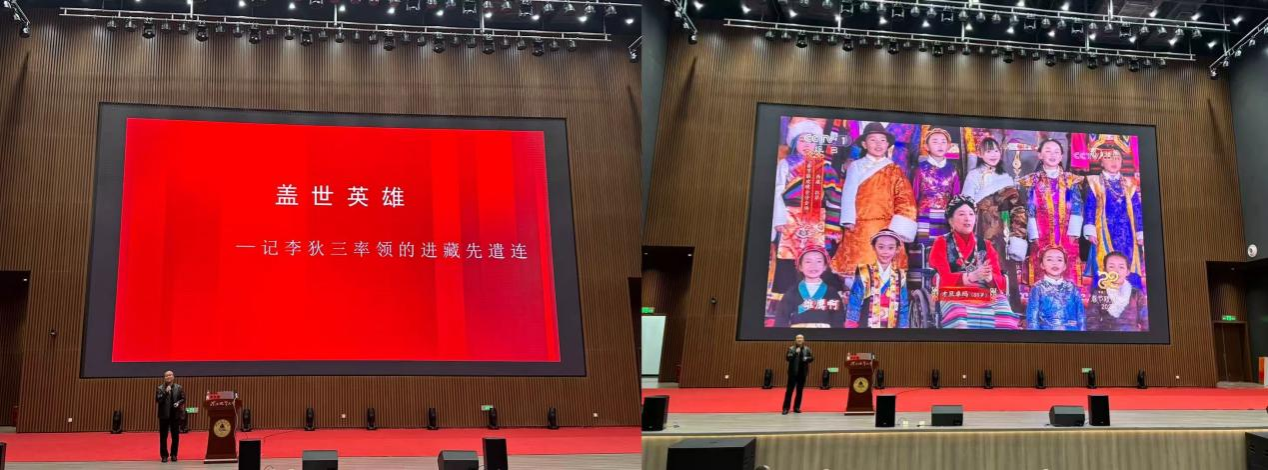 在主题分享环节,李庆雪以生动的语言、真挚的情感,带领师生走进党员英雄李狄三与进藏先遣连的战斗历程。作为李狄三烈士亲属及事迹挖掘宣讲人,李庆雪讲述了1950年李狄三率进藏先遣连从新疆和田进军西藏阿里,在极端困苦的条件下坚决执行命令,严守民族政策,推动当地和平解放的英雄事迹。他结合珍贵的历史背景资料,从英雄投身革命事业的初心、面对困难时的坚韧,到始终坚守的党员信仰,全方位展现了英雄李狄三和战友们忠诚于党、服务人民、甘于奉献的崇高品格。他提到,英雄的一生是共产党人“为人民谋幸福、为民族谋复兴”的生动缩影,即便在艰苦环境中,也始终以党员的标准严格要求自己,用生命践行了入党誓词。分享过程中,在场师生认真聆听、深受触动,不时以掌声表达对英雄的敬意与缅怀。