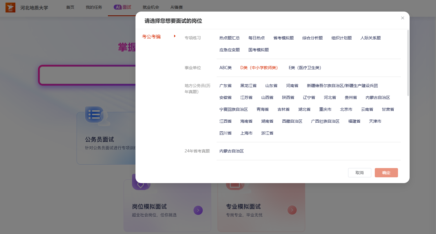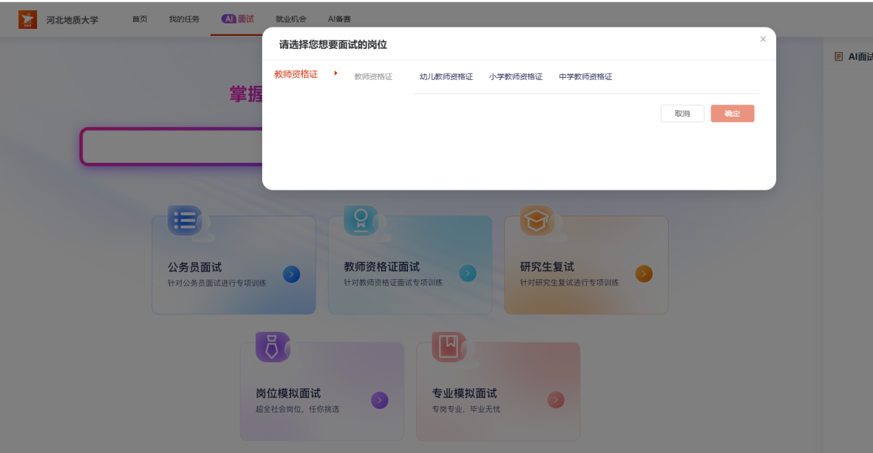 别担心!你的“就业护航官”已上线——河北地质大学就业指导与服务中心正式推出就业能力提升系统,为你打造全天候、全场景、智能化的就业训练平台!